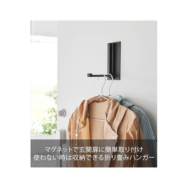 商品名:山崎実業(Yamazaki) マグネット 折り畳みハンガー ブラック 使用時:約W8×D16.5×H18cm 収納時:約W8×D3×H18cm タワー tower 簡単取り付け 玄関 収納 5988