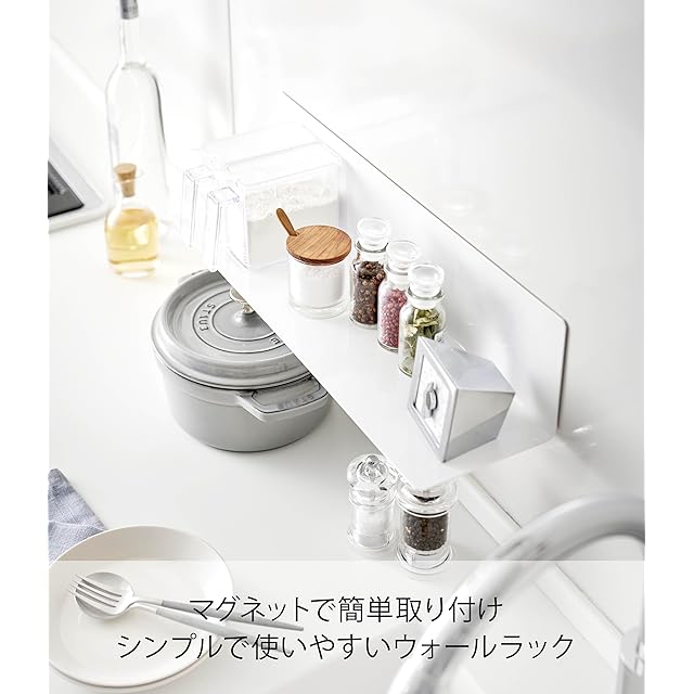 山崎実業(Yamazaki) マグネットキッチン棚 ワイドホワイト 約W50XD14XH12cm タワー 飾り棚 キッチンラック ウォールラック 5078