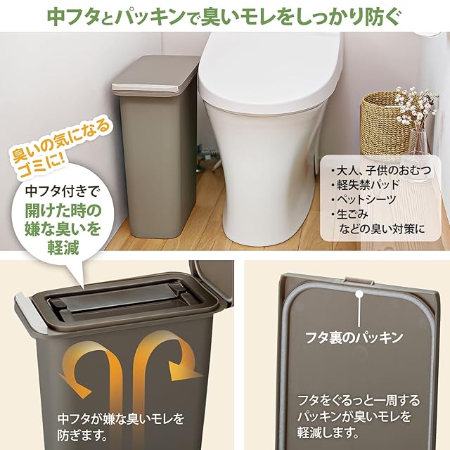 リス ゴミ箱 中フタ付き 開けても防臭ペール 20SN ブラウン 21L H&H 日本製