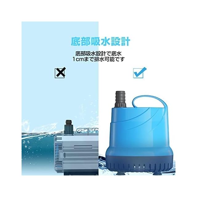 低騒音設計とパワフル:高性能なモーターは耐久性があるだけでなく、低騒音設計で家庭用のアクアリウムにおいてもOKです。360度パワフルに吸水できるため、十分な酸素が含まれた水を循環させる、水流をつくることで、水の腐敗を防ぐ役割があります。