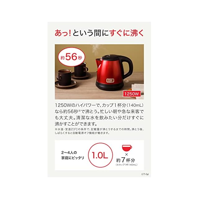 ティファール 電気ケトル 1.0L ステンレスボディ 「メゾン ワインレッド」 KI271FJP