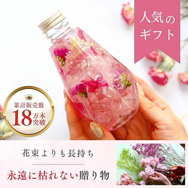 商品名:FLOWERiUM ハーバリウム 贈り物 2025 フラワーギフト 日本製 花 flower 結婚 記念日 誕生日 プレゼント ギフト 女性 お祝い 退職 大切な人 フラワリウム ドロップボトル (ピンクパープル)