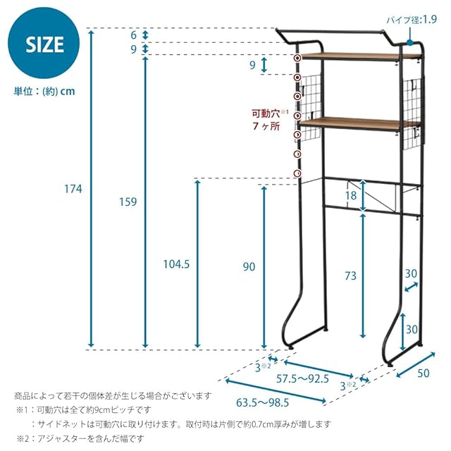 サイズ:(約)幅64.5~98.5x奥行50x高さ174cm