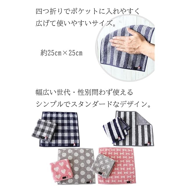世界にもその名を広げる愛媛県今治市の今治タオル。独自の高い品質基準を満たしたタオルだけがブランドネームを付けることができます。植物由来のポリ乳酸(PLA)配合した抗菌防臭効果でいつも清潔。四つ折りでポケットに入れやすく広げて使いやすいサイズ。ストライプやチェックでメンズ・レディース問わず使えるシンプルでスタンダードなデザイン。