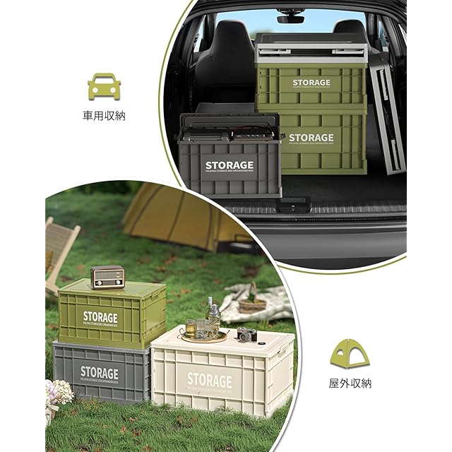 【多様なデザイン、大容量バリエーション】 オリーブグリーン:アウトドアキャンプに最適な車用コンテナボックスとして、自然との一体感を感じさせるリラックス感を提供します。 ライトグレー&ダークグレー:モダンなインダストリアルスタイルの室内収納やトランク収納(キャスター付き収納ケース)にぴったりです。 クリームホワイト:柔らかく温かみのある色合いで、明るく整った空間を演出します。 さらに、8種類のサイズバリエーションで、家庭用収納・キャンプ用品整理・車載収納など、あらゆるシーンに対応。実用性とデザイン性を兼ね備えた多機能コンテナボックスです。