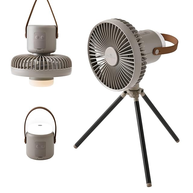 商品名:アレジア キャンプ扇風機 アウトドア扇風機 10000mAh 充電式 スマホ充電 LEDライト付 三脚タイプ 吊り下げ キャンプ アウトドア 卓上