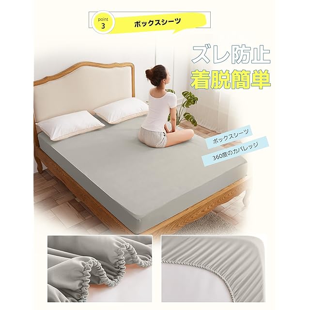 【セット内容・仕様】「掛け布団カバー・150x210cm(1枚)」:片側にファスナーを使用、布団留め紐8ヶ所付き。「ボックスシーツ・100X200+30cm(1枚)」:全周ズレ防止ゴム付き、高さ3-28cmの敷き布団とマットレスの底まで包むことが可能。「枕カバー・43X63cm(1枚)」:封筒式で出し入れが簡単です。