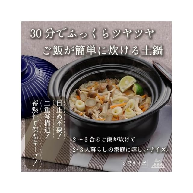 三重県四日市でつくる、安心の国産日本製の萬古焼ごはん鍋。