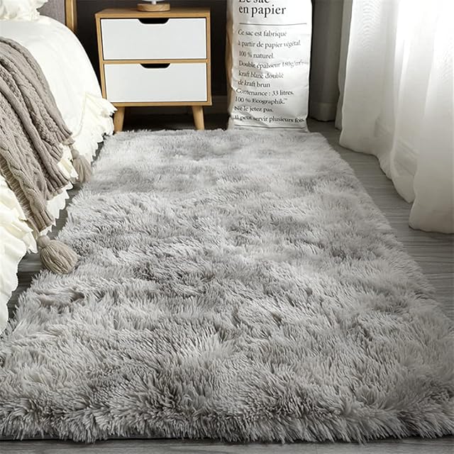 Leesentec カーペット ラグ ふわふわ 洗える ラグマット 北欧 滑り止め付き 防音 抗菌 防臭 毛長 冷房 床暖房対応 長方形 (80x120cm, ライトグレー)