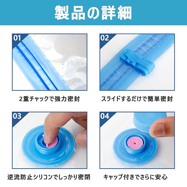 【高耐久7ミクロン厚で破れにくい】 PA/PE素材を使用し、厚さは業界標準より約40%増の7ミクロン。引っ張りや繰り返し使用にも強く、空気漏れを防止。長期間でも安心してご使用いただけます。
