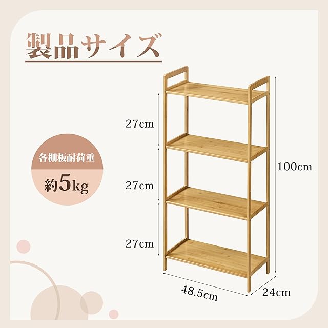 【製品仕様】 サイズ:幅48.5*奥行24*高さ100cm。重量:3kg。素材:竹。万一お客様が受け取った製品は問題がありましたら、サービスサポートご気軽に連絡してください。返品&交換&返金に対応していて、安心してご購入いただけます。