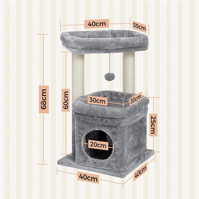 PAWZ Road キャットタワー ミニ 猫タワー 小型 低い 小さめ 据え置き 人気 爪とぎポール 爪研ぎ 麻紐 猫のおもちゃ コンパクト 省スペース 頑丈 安全 猫ハウス 展望台 - 68cm ベージュ