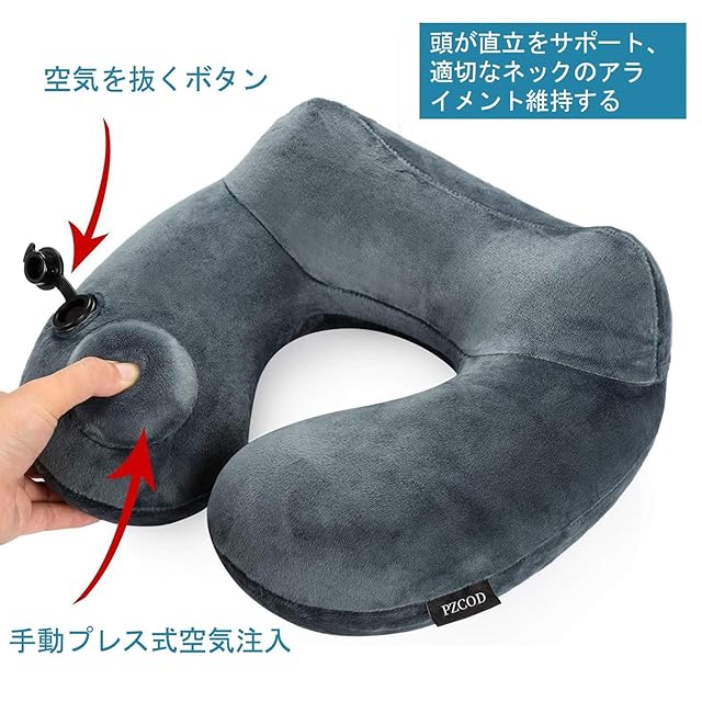 PZCOD ネックピロー 首枕 旅行用 飛行機 空気枕 携帯枕 U型 バス オフィス トラベル 旅行便利グッズ 収納袋 洗えるカバー