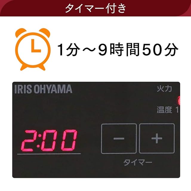 電源コード長さ:約2.5m/●火力調節/加熱調理:6段階(火力)80W相当(500W間欠動作)~1400W/揚げ物調理:6段階(油温)約150~約200℃/●タイマー:1分~9時間50分