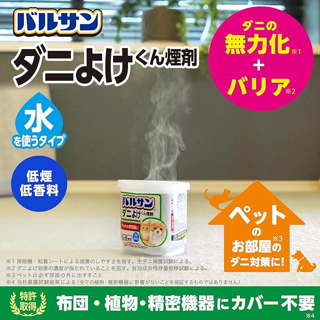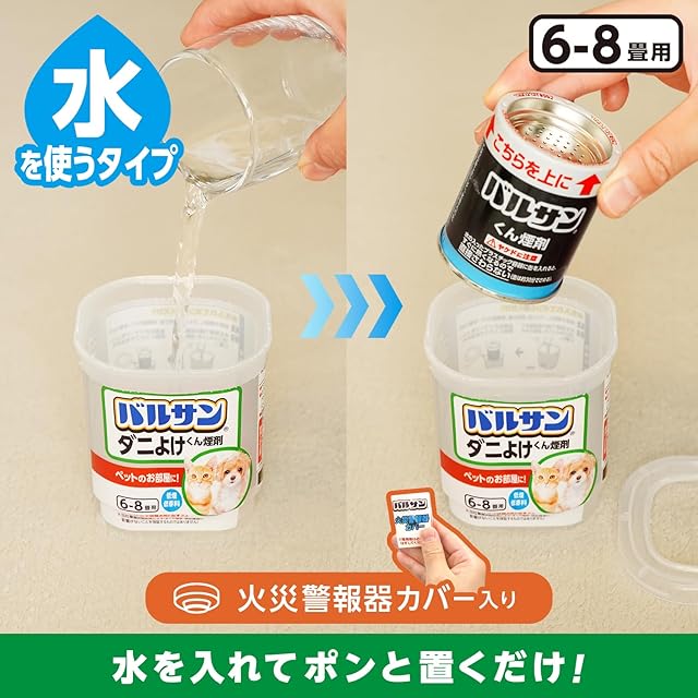 商品名:バルサン ダニよけ くん煙剤 ペットのお部屋用 (6~8畳用) 6g×3個パック /植物・精密機器カバー不要/バリア効果1ヶ月/(水始動タイプ)