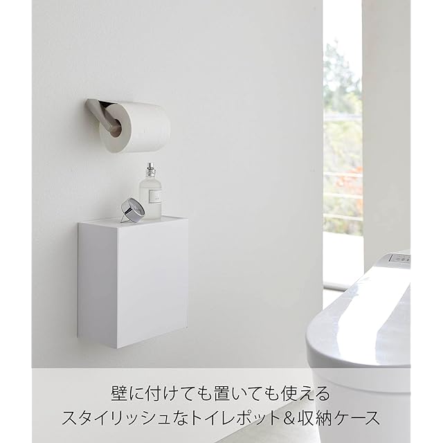 山崎実業(Yamazaki) 【 石こうボードピンセット・木ネジ 付属 】 ウォール トイレポット & 収納ケース ホワイト 約W20.5XD12.2~23.2XH24cm タワー フラップ式 小物収納 ゴミ箱 5429