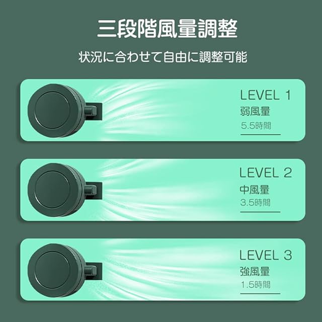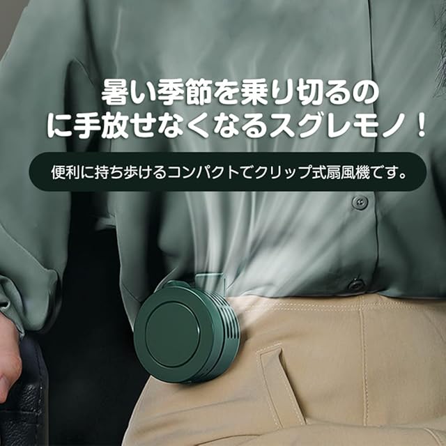 商品名:LUNPEAR 扇風機 クリップ 羽なし ミニ ネックファン おしゃれ 女性向け 腰かけ 小型 三段階風量 360°送風調節 静音 USB充電 軽量 (グリーン)