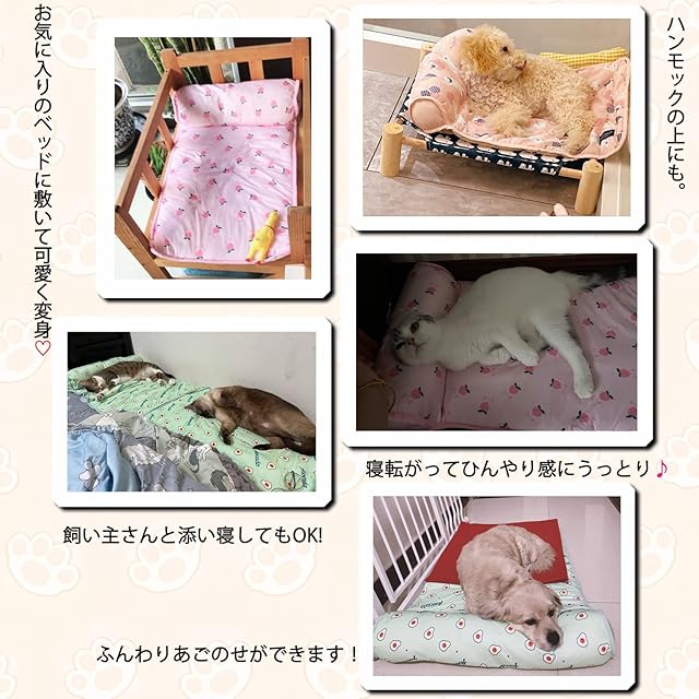 【色んな場所で活躍】スクエア形で、ケージの中にひいて使うのにピッタリです。冬用ベッドに敷くと涼しい夏用に大変身!暑い夏も心地よいスペースを確保します。クルクルっと丸めればコンパクトに!軽量で旅行に持ち運びも楽々♪ワンちゃん・ネコちゃんのお気に入りのベッドやソファはもちろん、お出かけの際に車の座席に敷いたり、カフェやお友達宅の床、公園のベンチなどにサッと敷いたりして愛犬のひえひえスポットになります。