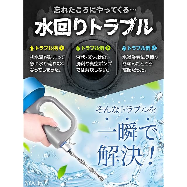 【商品仕様】○ワイヤー長さ:4.5m ○使用場所:洗面台/キッチン/浴室 ○対応可能排水溝サイズ:直径2.0cm以上 ○セット内容:パイプクリーナー本体、取扱説明書 ○ブランド:SYALEO