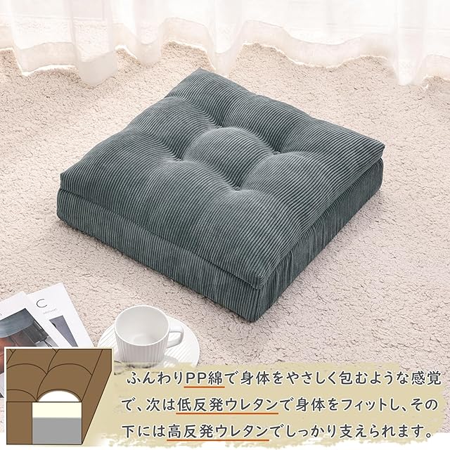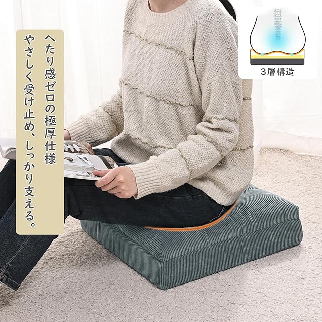 Baibu Home 座布団 クッション 低反発+高反発 厚め クッション ゆっくり沈む ざぶとん フロアクッション カバー丸洗える 床置き 42角 コーデュロイ生地 新型3層構造 グレー