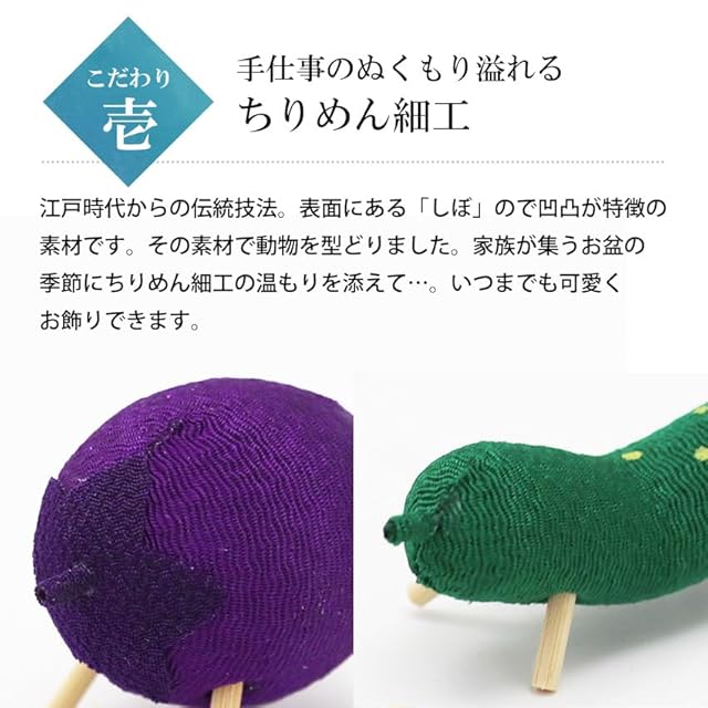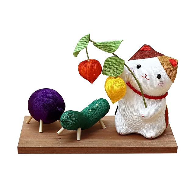 大阪長生堂 お盆飾り ちりめん製 コンパクト ミニお線香 無料特典付 きゅうり なす ほおずき 供養 ペット 供養 おしゃれ かわいい 初盆セット ミニサイズ (三毛猫とお盆飾り伝統色精霊馬)