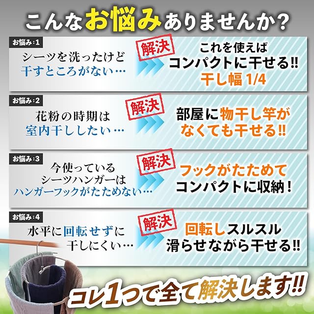 ✅【オールステンレス】 耐荷重8㎏→10㎏に改善!。サイズ:直径43㎝x高さ20㎝。プロの洗濯家が監修した、360度回転しフックが折り畳めるシーツハンガーです。幅43cmで200cm分の長さのシーツ類を干せ、水平に回転するので干しやすく取り入れやすいうえに風に任せて回転するので乾きやすいです。フックを付け根で折りたためるのでコンパクトに収納が可能です。