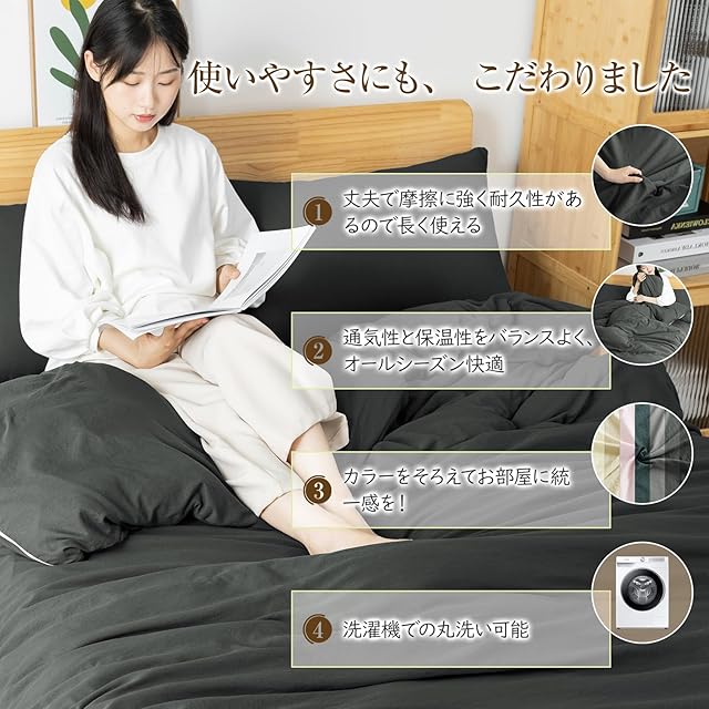 【オールシーズン&和洋通用の仕様】通気性と吸放湿性優れて、夏の場合は、就寝中にかいた汗を吸い取ったり、発散してくれるのでいつでもサラサラとした肌触り。冬の時、カバーの繊維と繊維の間に暖かな空気をためてくれるので、布団の中を暖かく保ったりするという役割もあります。オールシーズン快適な寝心地が楽しめます。和洋どんなテイストのお部屋にも馴染みやすい。自家用でも、ご両親、友人にプレゼントとしてもおすすめします。洗い替え用、来客用としては最高です。