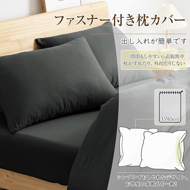 Housecover 布団カバー シングル 3点セット 寝具カバーセット【水洗い加工&超柔らかい】掛け布団カバー 洋式ベッド・和式布団兼用 ボックスシーツ 洗いざらしシワ加工 やわらか 肌触り 吸水速乾 丸洗い 無地 シンプル オールシーズン(掛け布団カバー シングル・3点セット ブラック)