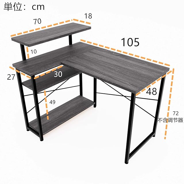 商品名:ZXD パソコンデスク L字 ゲーミングデスク 幅105 L字デスク pcデスク 机 ラック付き 収納 コーナー オフィス 在宅勤務 書斎 グレー