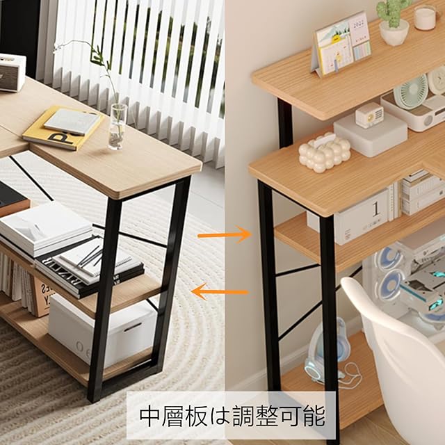 1.新しい L 字型のコンピューター デスクは、オフィスとゲームの両方に適しており、サイド シェルフは必要に応じて左側または右側に取り付けることができます。