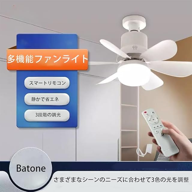 商品名:Batone シーリングファンライト 30W シーリングライト扇風機 120W相当 3,000lm LED シーリングファンライト 扇風機 DCモーター E26口金强化 メモリー/タイマー機能 リモコン付き 6-8畳 軽量 省電力 電球色 昼光色 簡単取り付け 工事不要 薄型 おしゃれ 照明器具 換気 天井照明