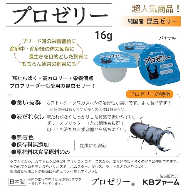 商品名:KBファーム プロゼリー(16g 500個入り) 高たんぱく カブトムシ・クワガタ用