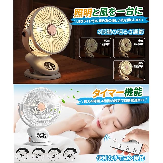 商品名:扇風機 自動首振り タイマー LEDライト付き 卓上扇風機 風量5段階調節 LCD残量・風量段階表示 リモコン アロマ対応 クリップ扇 風 機 壁掛け せんぷうき 静音 ファン 小型 usbファン dcモーター 強力 Type-C充電式 4000mAh 充電しながら使用可能 5枚羽根 お手入れ簡単 直径16.5cm リビング オフィス 車中泊 アウトドア キャンプ用品