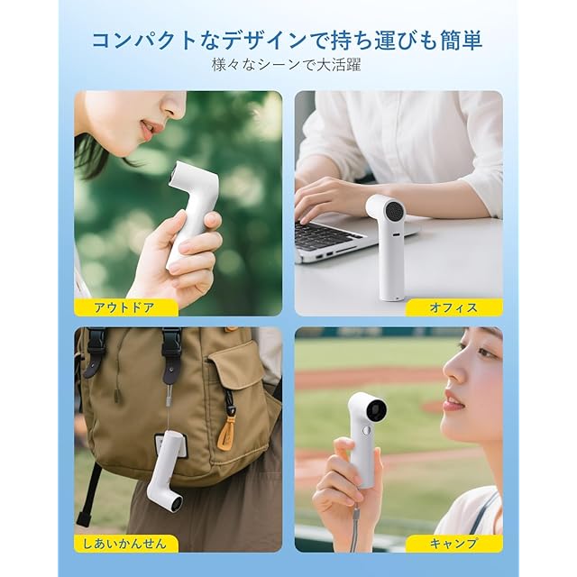 【超コンパクト ハンドファン 強力!夏の必需品】完全一体型構造でハンディ扇風機の最小限サイズを実現。ポケットはもちろん、バッグの隅にもすっきり収納。通勤かばんの隙間/自転車カゴ/デスク引き出し…ハンディ扇風機ならどんな狭い空間も『風のポケット』に変身。暑さを感じたその瞬間、ハンディ扇風機をサッと取り出せる3秒アクション。必要な時にすぐ使えるサプライズ設計です。