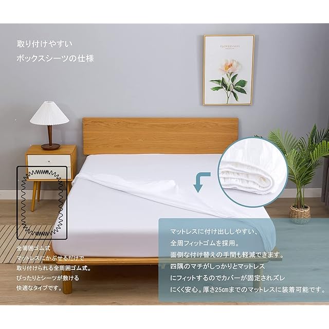 ボックスシーツ クイーン 白 綿100% ベッドシーツ 平織り マットレスカバー ベット用 防ダニ 抗菌 BOXシーツ ホワイト