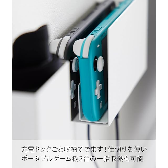 商品名:山崎実業(Yamazaki) 【 石こうボードピンセット・木ネジ 付属 】 石こうボード壁対応 充電しながら収納できる ゲーム機収納 ホワイト 本体用収納:約W17.5×D6×H10.6cm スマート smart ゲーム機 コントローラー まとめて収納 整理整頓グッズ 2115