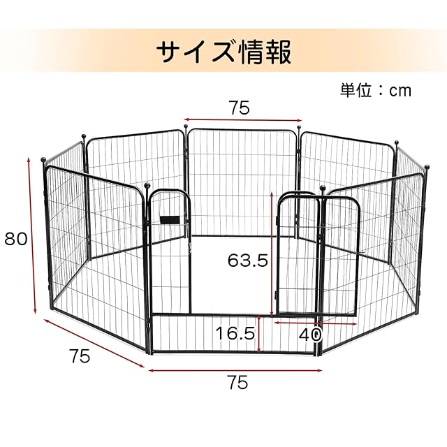 商品名:PETTOM 犬 サークル ペットフェンス ペットケージ 犬 ゲージ 中大型犬用 スチール製 コンパクト 8枚組 高さ80cm 高さ100cm 室内外兼用 折り畳み式 組立簡単 軽量 持ち運び便利 (高さ80cm-八枚)