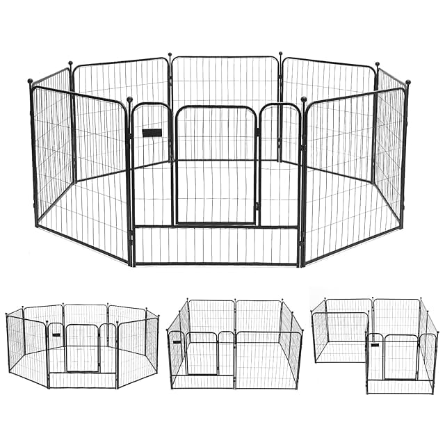 PETTOM 犬 サークル ペットフェンス ペットケージ 犬 ゲージ 中大型犬用 スチール製 コンパクト 8枚組 高さ80cm 高さ100cm 室内外兼用 折り畳み式 組立簡単 軽量 持ち運び便利 (高さ80cm-八枚)