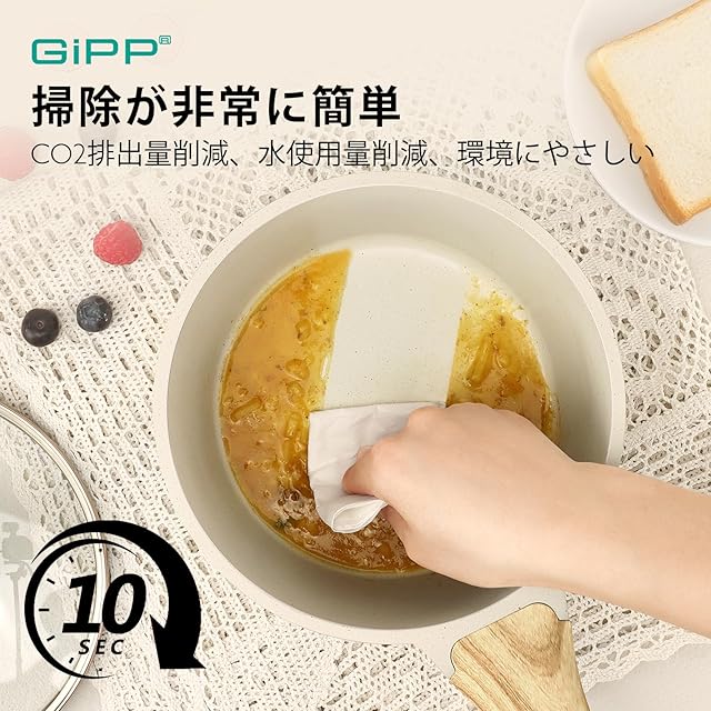 GiPP 片手鍋 18cm 蓋付き IH対応 セラミック ミルクパン 焦げ付かない PFOA PFOSフリー お手入れ簡単【600日】ホワイト