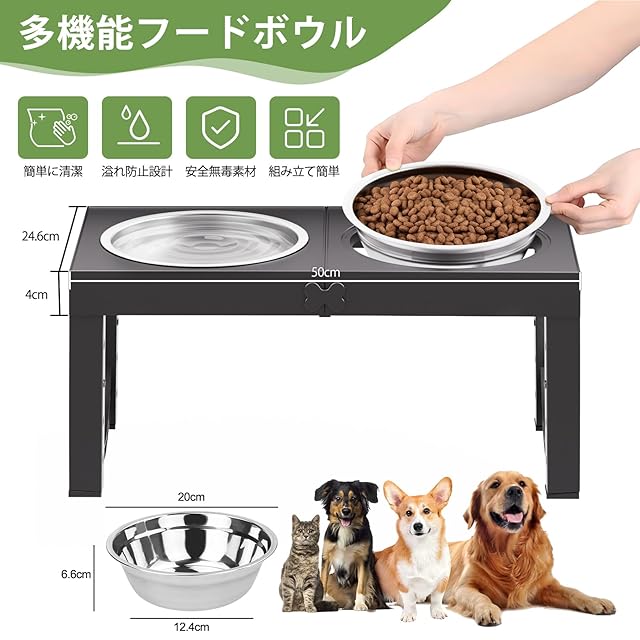 ■【市販品より大きい&幅広い適用性】 ステンレスボウルは取り外して使用でき、在宅の利用はもちろん、愛犬と散歩やトレーニング時、又は外出、旅行先で簡単にペットのお食事を用意できます。スタンドを含めて最小50*25*8cmの大きさで、スッキリ収納できます。災害時に避難先などにも使え、ひとつ持っておくと安心です。