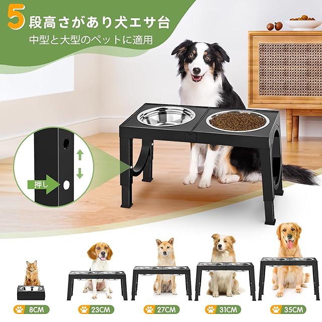 商品名:Aystkniet 犬 食器台 中型犬~大型犬向け ペット 餌台 ステンレスボウル 食器 エサ台 4段階 高さ調節可能 餌入れ 犬 ご飯台 (ブラック)