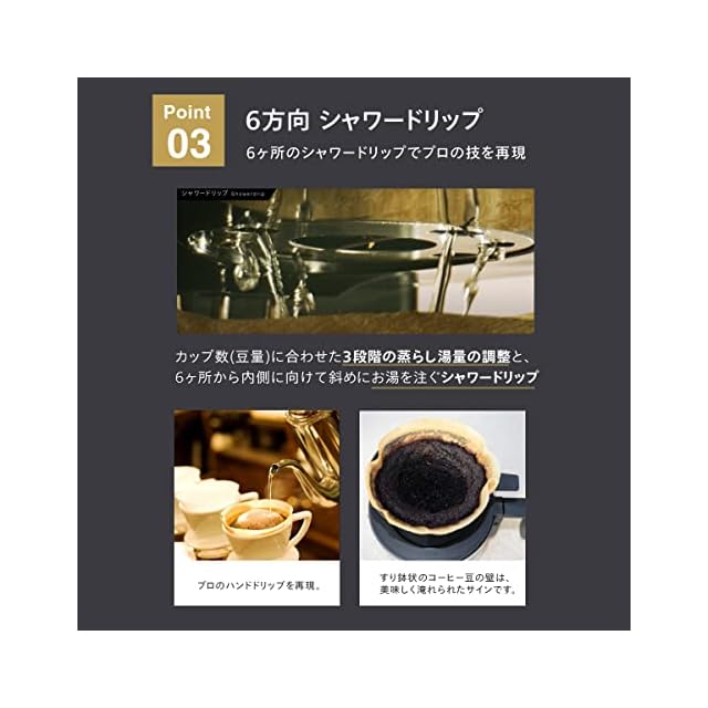 抽出温度は83℃/90℃の2段階に設定可能。シャワードリップで堅牢なろか層を作り、ハンドドリップに限りなく近いドリップを再現しています。