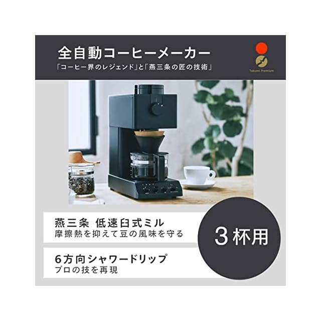 ツインバード コーヒーメーカー 全自動 ミル付き 豆から 3杯用 臼式 蒸らし 湯温調節 燕三条 ブラック 黒 CM-D457B
