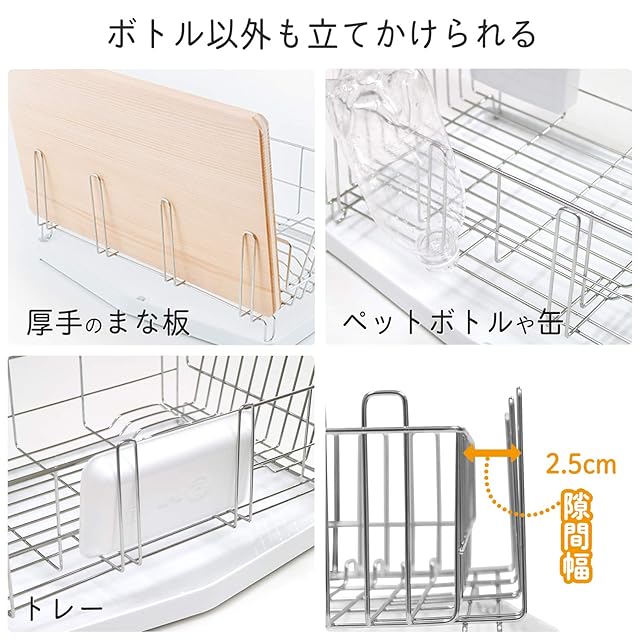 外側スタンドはコップだけでなく、ペットボトルを干したり、まな板立てとしても使えます。