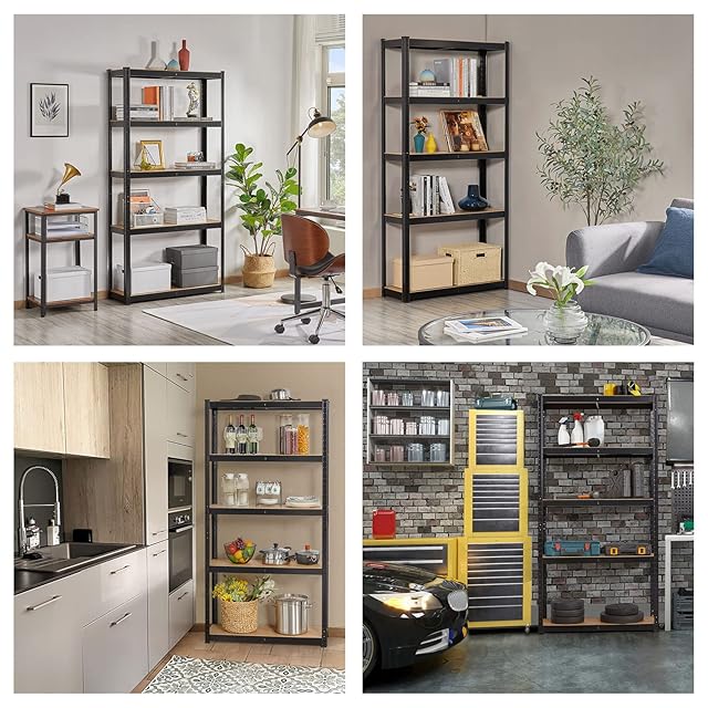 【多目的用途】五段の棚にはビニール製の脚が16あり、物置の収納棚に組み立てられますし、デスクとして平に置くこともできます。地下室、貯蔵室、作業室、お店、家庭、寝室、リビングルーム、キッチンなどに向いています。
