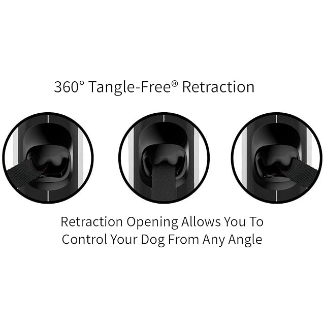 TUG 360°タングルフリー、頑丈引き込み式犬リード、スリップ防止ハンドル付き 5 m 強いナイロンテープ。片手ブレーキ、一時停止、ロック S サイズホワイト