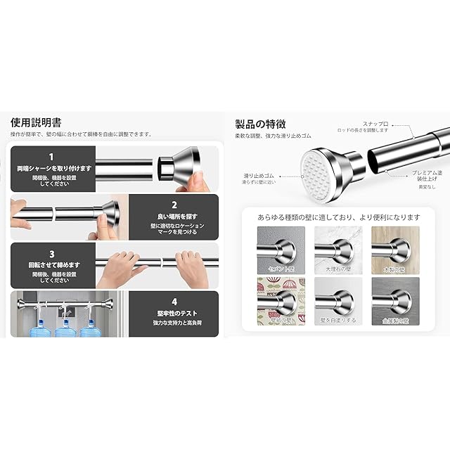 【一年間の製品】商品が不具合がありましたら、メールにてご連絡ください。 弊店は新品を無料に再送致します。或いは、全額を返金致します。本店舗には、さまざまなデザインの物干し竿、突っ張り棒、伸縮棒、カーテン棒があり、お客様がさまざまな選択をすることができます。当店舗をご覧ください。