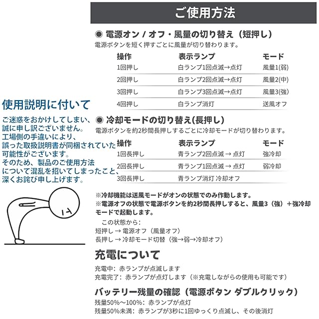 【10000mAh大容量&Type-C急速充電】 長時間使用に対応した大容量バッテリー搭載。最大風量で約7時間、省エネモードなら最大15時間使用可能。Type-Cポートで急速充電対応、忙しい日々でもすぐに使えて安心です。