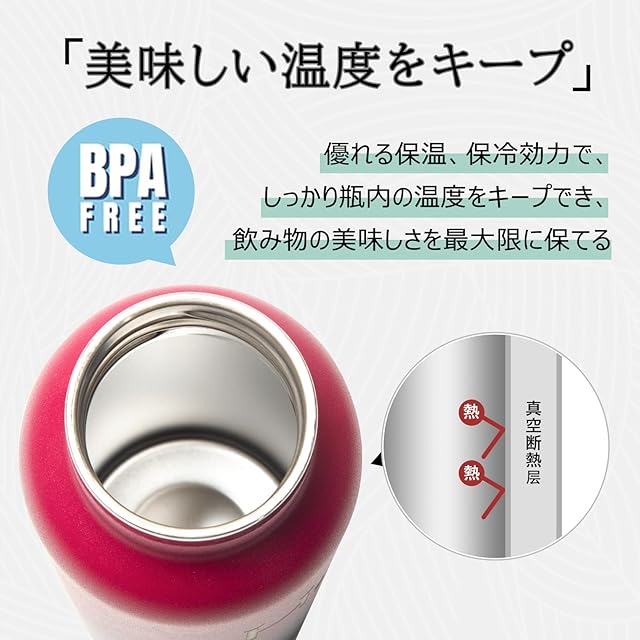 【真空断熱技術で長時間の保温・保冷が可能】 二重真空断熱構造を採用し、冷たい飲み物を12時間、温かい飲み物を8時間適温に保つことができます。季節を問わず快適な飲み物を楽しむことができ、登山、旅行、キャンプなど長時間の外出時にも最適なアイテムです。