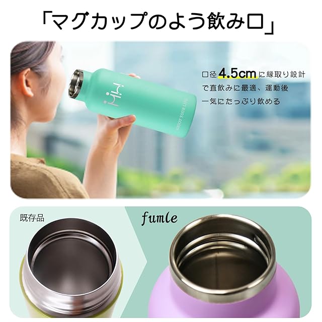 【滑り止め加工付き取っ手で快適な携帯性】 軽量設計に加え、取っ手が付いているため持ち運びがしやすい仕様です。滑り止め加工が施されており、しっかりと握りやすく安全です。通勤、学校、アウトドア、旅行など、どのような場面でも便利に使用できる万能な水筒です。